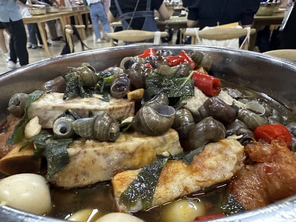 それぞれの地域で学生との交流があり、柳州の学校ではタニシが出てきました🤣