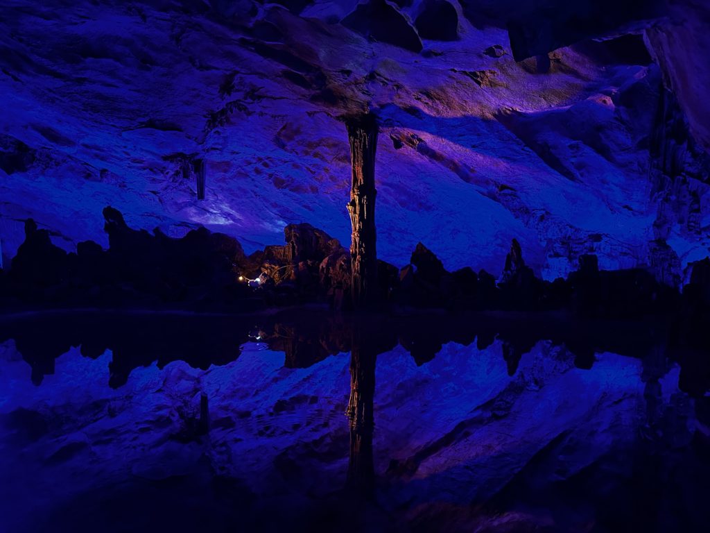 次に芦笛岩に行きました。巨大な鍾乳洞がありカラフルにライトアップされていました。