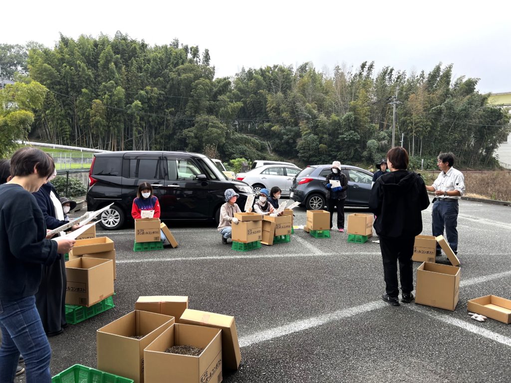 託麻商工会女性部でも、地域活動に取り組む中で生ごみ削減に向け、段ボールコンポストづくりで竹チップの普及活動を進めています!!!!!