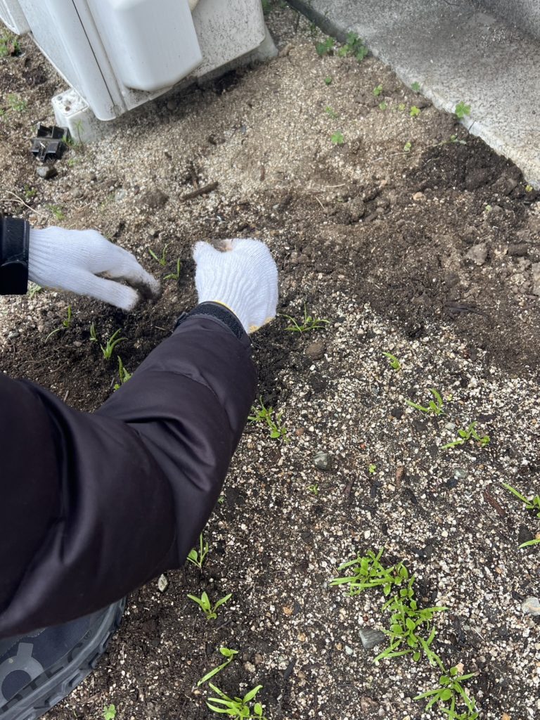 また、一部の芽は近すぎるため、他の場所へ移植する作業も行いました。移植は少し繊細な作業ですが、根を傷つけないように注意しながら進めています。芽たちが新しい場所で元気に育ってくれることを願っています。