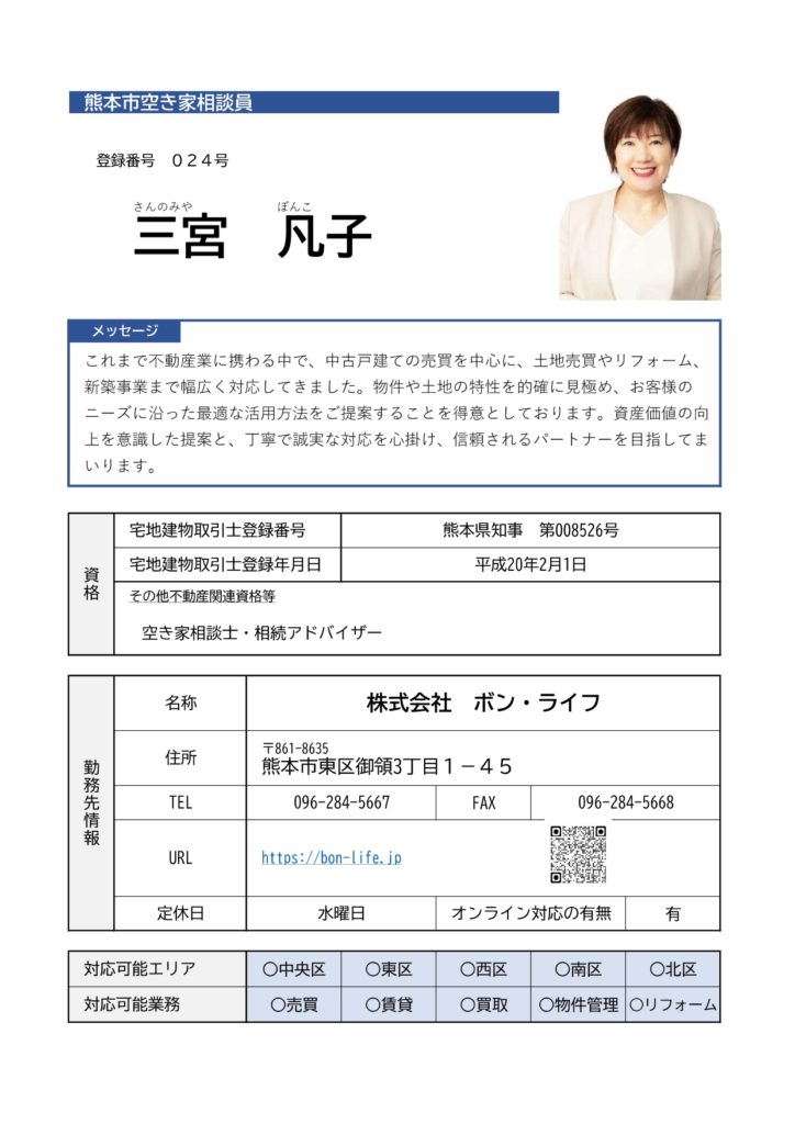熊本市HP公式サイトに空き家相談委員名簿ボン・ライフ三宮凡子社長が載っています✨✨