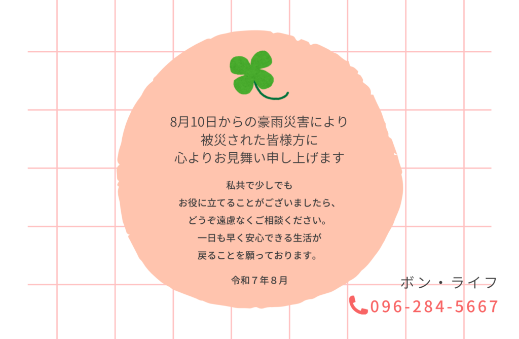 令和7年8月 豪雨災害により被災された皆様方に心よりお見舞いを申し上げます