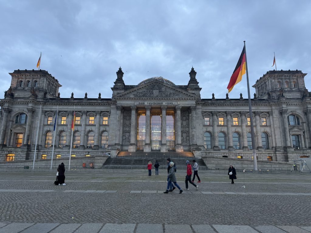 こちらは、ドイツの国会議事堂(ライヒスターク)で、ベルリンの象徴的建築であり、歴史的役割と現代建築の融合を体現しています。