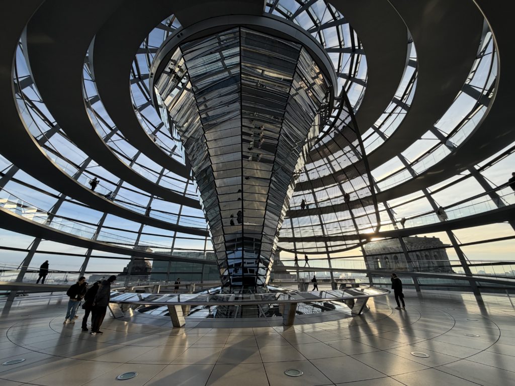 ガラスドームは、建物の象徴であり、透明性と民主主義を表現しています。内部にはらせん状のスロープがあり、市民が議場を見下ろせる設計となっています。